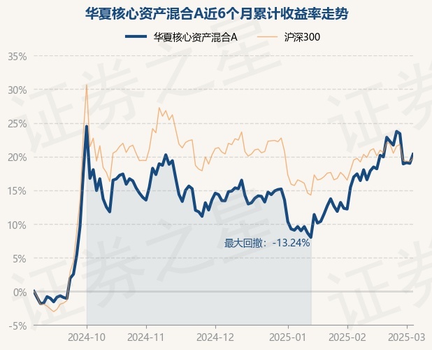 证券之星消息,3月5日,华夏核心资产混合A最新单位净值为0.5785元,累计净值为0.5785元,较前一交易日上涨1.14%。历史数据显示该基金近1个月上涨7.25%,近3个月上涨6.09%,近6个月上涨20.35%,近1年上涨11.85%。该基金近6个月的累计收益率走势如下图: