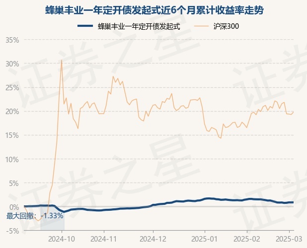 证券之星消息,3月5日,蜂巢丰业一年定开债发起式最新单位净值为1.0773元,累计净值为1.2114元,较前一交易日上涨0.01%。历史数据显示该基金近1个月下跌0.61%,近3个月上涨0.36%,近6个月上涨0.85%,近1年上涨2.71%。该基金近6个月的累计收益率走势如下图: