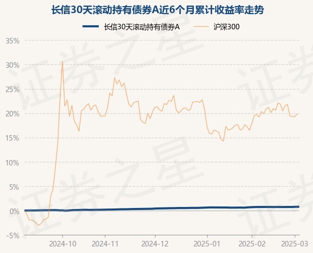长信30天滚动持有债券A为债券型-中短债基金,根据最新一期基金季报显示,该基金资产配置:无股票类资产,债券占净值比104.27%,现金占净值比0.17%。