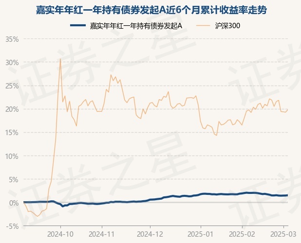 证券之星消息,3月5日,嘉实年年红一年持有债券发起A最新单位净值为1.0718元,累计净值为1.096元,较前一交易日上涨0.06%。历史数据显示该基金近1个月下跌0.38%,近3个月上涨0.82%,近6个月上涨1.49%,近1年上涨3.23%。该基金近6个月的累计收益率走势如下图: