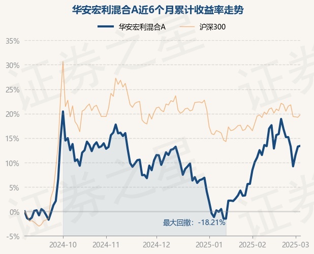 证券之星消息,3月5日,华安宏利混合A最新单位净值为5.33元,累计净值为5.95元,较前一交易日上涨0.13%。历史数据显示该基金近1个月上涨4.6%,近3个月上涨2.42%,近6个月上涨13.4%,近1年下跌6.38%。该基金近6个月的累计收益率走势如下图: