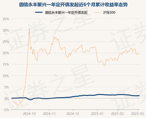 证券之星消息,3月5日,圆信永丰聚兴一年定开债发起最新单位净值为1.0588元,累计净值为1.1427元,较前一交易日上涨0.02%。历史数据显示该基金近1个月下跌0.39%,近3个月上涨0.31%,近6个月上涨1.15%,近1年上涨8.48%。该基金近6个月的累计收益率走势如下图: