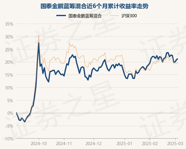 证券之星消息,3月5日,国泰金鹏蓝筹混合最新单位净值为1.298元,累计净值为3.422元,较前一交易日上涨0.23%。历史数据显示该基金近1个月上涨1.41%,近3个月上涨4.04%,近6个月上涨21.19%,近1年上涨9.59%。该基金近6个月的累计收益率走势如下图: