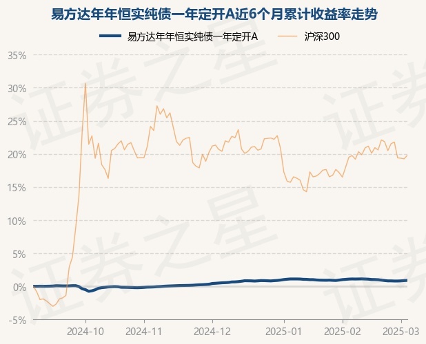 证券之星消息,3月5日,易方达年年恒实纯债一年定开A最新单位净值为1.0169元,累计净值为1.1606元,较前一交易日上涨0.03%。历史数据显示该基金近1个月下跌0.12%,近3个月上涨0.36%,近6个月上涨0.89%,近1年上涨3.04%。该基金近6个月的累计收益率走势如下图: