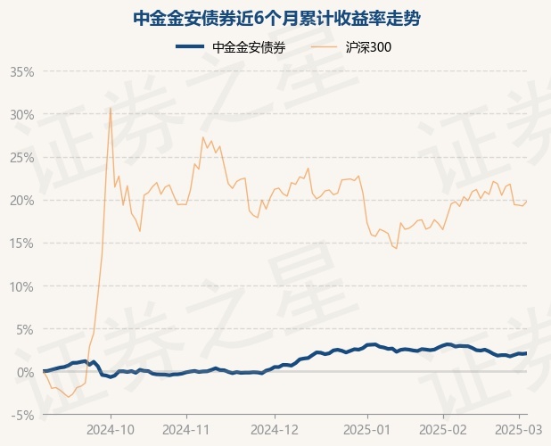 证券之星消息,3月5日,中金金安债券最新单位净值为1.0266元,累计净值为1.0616元,较前一交易日上涨0.06%。历史数据显示该基金近1个月下跌0.88%,近3个月上涨1.34%,近6个月上涨2.08%,近1年上涨4.68%。该基金近6个月的累计收益率走势如下图: