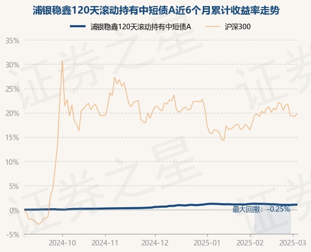 证券之星消息,3月5日,浦银稳鑫120天滚动持有中短债A最新单位净值为1.0926元,累计净值为1.0926元,较前一交易日上涨0.01%。历史数据显示该基金近1个月下跌0.14%,近3个月上涨0.41%,近6个月上涨1.05%,近1年上涨2.47%。该基金近6个月的累计收益率走势如下图: