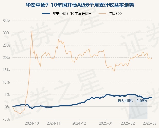 证券之星消息,3月5日,华安中债7-10年国开债A最新单位净值为1.1898元,累计净值为1.2631元,较前一交易日上涨0.0%。历史数据显示该基金近1个月下跌1.06%,近3个月上涨1.93%,近6个月上涨3.69%,近1年上涨7.42%。该基金近6个月的累计收益率走势如下图: