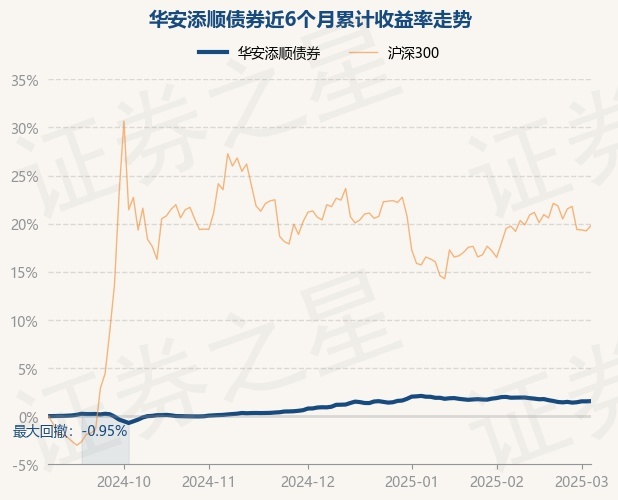 证券之星消息,3月5日,华安添顺债券最新单位净值为1.0763元,累计净值为1.0763元,较前一交易日上涨0.02%。历史数据显示该基金近1个月下跌0.31%,近3个月上涨0.63%,近6个月上涨1.56%,近1年上涨3.45%。该基金近6个月的累计收益率走势如下图:
