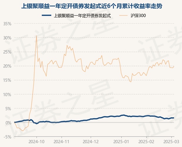 证券之星消息,3月5日,上银聚顺益一年定开债券发起式最新单位净值为1.0485元,累计净值为1.1252元,较前一交易日上涨0.03%。历史数据显示该基金近1个月下跌0.68%,近3个月上涨0.31%,近6个月上涨1.58%,近1年上涨5.63%。该基金近6个月的累计收益率走势如下图: