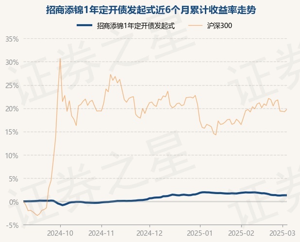 证券之星消息,3月5日,招商添锦1年定开债发起式最新单位净值为1.0327元,累计净值为1.1444元,较前一交易日上涨0.0%。历史数据显示该基金近1个月下跌0.51%,近3个月上涨0.48%,近6个月上涨1.32%,近1年上涨3.2%。该基金近6个月的累计收益率走势如下图: