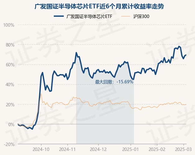 证券之星消息,3月5日,广发国证半导体芯片ETF最新单位净值为0.6645元,累计净值为1.329元,较前一交易日上涨0.42%。历史数据显示该基金近1个月上涨9.4%,近3个月上涨11.25%,近6个月上涨69.52%,近1年上涨48.26%。该基金近6个月的累计收益率走势如下图: