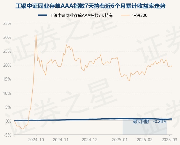 证券之星消息,3月5日,工银中证同业存单AAA指数7天持有最新单位净值为1.0523元,累计净值为1.0523元,较前一交易日上涨0.0%。历史数据显示该基金近1个月下跌0.1%,近3个月上涨0.06%,近6个月上涨0.59%,近1年上涨1.61%。该基金近6个月的累计收益率走势如下图: