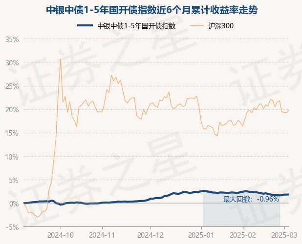 证券之星消息,3月5日,中银中债1-5年国开债指数最新单位净值为1.0859元,累计净值为1.1529元,较前一交易日上涨0.0%。历史数据显示该基金近1个月下跌0.57%,近3个月上涨0.76%,近6个月上涨1.83%,近1年上涨4.36%。该基金近6个月的累计收益率走势如下图: