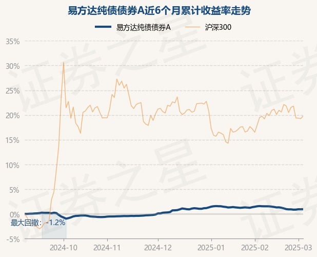 证券之星消息,3月5日,易方达纯债债券A最新单位净值为1.1091元,累计净值为1.5981元,较前一交易日上涨0.01%。历史数据显示该基金近1个月下跌0.49%,近3个月上涨0.67%,近6个月上涨0.95%,近1年上涨3.11%。该基金近6个月的累计收益率走势如下图: