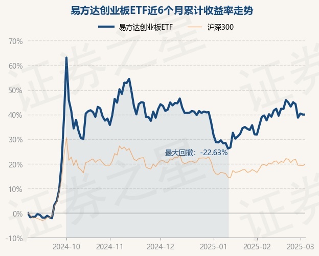 证券之星消息,3月5日,易方达创业板ETF最新单位净值为2.1486元,累计净值为2.4614元,较前一交易日上涨0.01%。历史数据显示该基金近1个月上涨6.15%,近3个月下跌1.4%,近6个月上涨39.99%,近1年上涨20.43%。该基金近6个月的累计收益率走势如下图: