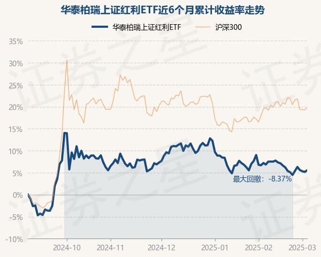 证券之星消息,3月5日,华泰柏瑞上证红利ETF最新单位净值为3.0047元,累计净值为2.9079元,较前一交易日上涨0.35%。历史数据显示该基金近1个月下跌1.17%,近3个月下跌3.51%,近6个月上涨5.56%,近1年下跌0.24%。该基金近6个月的累计收益率走势如下图: