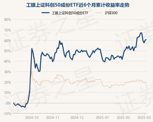证券之星消息,3月5日,工银上证科创50成份ETF最新单位净值为1.1137元,累计净值为0.7761元,较前一交易日上涨0.29%。历史数据显示该基金近1个月上涨10.17%,近3个月上涨8.01%,近6个月上涨60.61%,近1年上涨32.17%。该基金近6个月的累计收益率走势如下图: