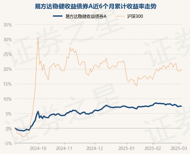 证券之星消息,3月5日,易方达稳健收益债券A最新单位净值为1.3798元,累计净值为2.5014元,较前一交易日上涨0.01%。历史数据显示该基金近1个月下跌0.27%,近3个月上涨1.33%,近6个月上涨7.43%,近1年上涨6.87%。该基金近6个月的累计收益率走势如下图: