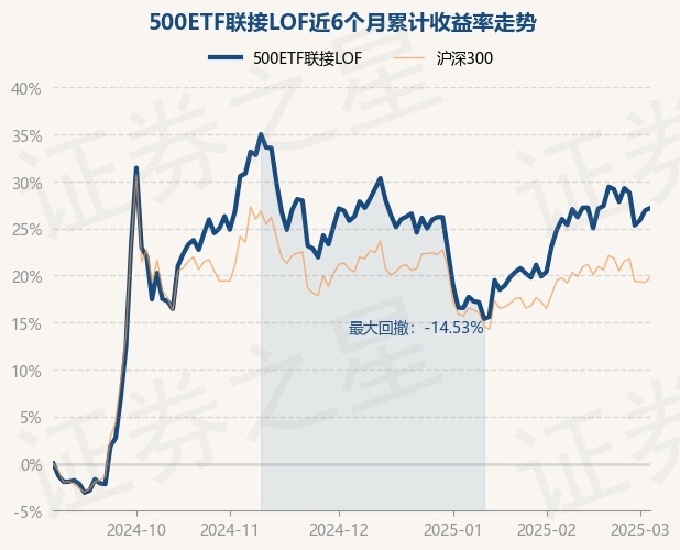 证券之星消息,3月5日,500ETF联接LOF最新单位净值为1.6612元,累计净值为1.7612元,较前一交易日上涨0.21%。历史数据显示该基金近1个月上涨5.63%,近3个月上涨0.71%,近6个月上涨27.17%,近1年上涨11.89%。该基金近6个月的累计收益率走势如下图: