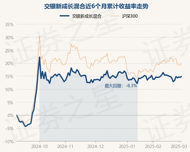 证券之星消息,3月5日,交银新成长混合最新单位净值为3.191元,累计净值为3.591元,较前一交易日上涨0.31%。历史数据显示该基金近1个月上涨1.01%,近3个月上涨1.43%,近6个月上涨14.91%,近1年下跌2.06%。该基金近6个月的累计收益率走势如下图: