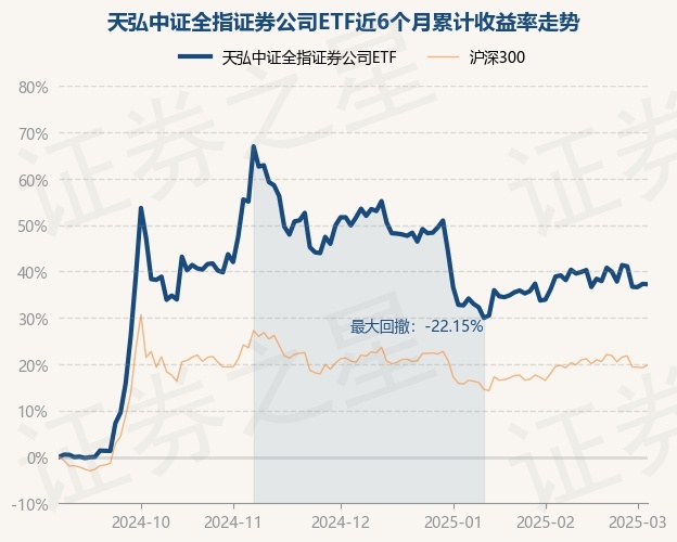 证券之星消息,3月5日,天弘中证全指证券公司ETF最新单位净值为1.0084元,累计净值为1.0084元,较前一交易日下跌0.05%。历史数据显示该基金近1个月上涨2.48%,近3个月下跌9.49%,近6个月上涨37.23%,近1年上涨22.62%。该基金近6个月的累计收益率走势如下图: