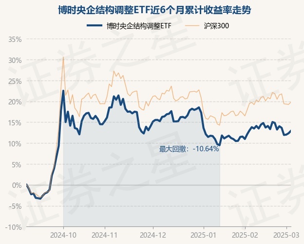 证券之星消息,3月5日,博时央企结构调整ETF最新单位净值为1.2837元,累计净值为1.3225元,较前一交易日上涨0.5%。历史数据显示该基金近1个月上涨1.74%,近3个月下跌2.03%,近6个月上涨12.9%,近1年上涨5.7%。该基金近6个月的累计收益率走势如下图: