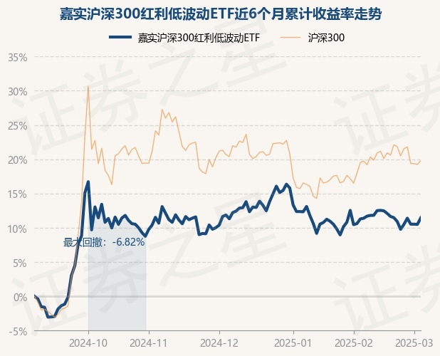 证券之星消息,3月5日,嘉实沪深300红利低波动ETF最新单位净值为1.3429元,累计净值为1.6092元,较前一交易日上涨0.86%。历史数据显示该基金近1个月上涨0.89%,近3个月上涨0.12%,近6个月上涨11.37%,近1年上涨10.83%。该基金近6个月的累计收益率走势如下图: