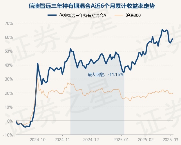 证券之星消息,3月5日,信澳智远三年持有期混合A最新单位净值为0.826元,累计净值为0.826元,较前一交易日上涨0.72%。历史数据显示该基金近1个月上涨7.34%,近3个月上涨11.94%,近6个月上涨58.91%,近1年上涨38.34%。该基金近6个月的累计收益率走势如下图: