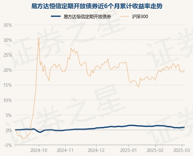 证券之星消息,3月5日,易方达恒信定期开放债券最新单位净值为1.0309元,累计净值为1.2699元,较前一交易日上涨0.02%。历史数据显示该基金近1个月下跌0.5%,近3个月上涨0.1%,近6个月上涨0.81%,近1年上涨2.85%。该基金近6个月的累计收益率走势如下图: