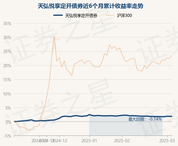 证券之星消息,3月5日,天弘悦享定开债券最新单位净值为1.2027元,累计净值为1.2891元,较前一交易日上涨0.02%。历史数据显示该基金近1个月下跌0.32%,近3个月上涨1.04%,近6个月上涨1.85%,近1年上涨3.64%。该基金近6个月的累计收益率走势如下图: