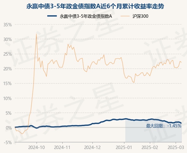 永赢中债3-5年政金债指数A为指数型-固收基金,根据最新一期基金季报显示,该基金资产配置:无股票类资产,债券占净值比115.26%,无现金类资产。