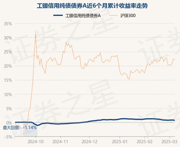 证券之星消息,3月6日,工银信用纯债债券A最新单位净值为1.471元,累计净值为1.512元,较前一交易日下跌0.02%。历史数据显示该基金近1个月下跌0.41%,近3个月上涨0.22%,近6个月上涨0.8%,近1年上涨3.13%。该基金近6个月的累计收益率走势如下图: