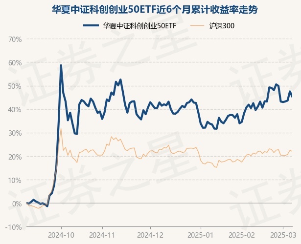 证券之星消息,3月6日,华夏中证科创创业50ETF最新单位净值为0.6051元,累计净值为0.6051元,较前一交易日上涨2.72%。历史数据显示该基金近1个月上涨6.7%,近3个月上涨3.28%,近6个月上涨47.55%,近1年上涨23.92%。该基金近6个月的累计收益率走势如下图: