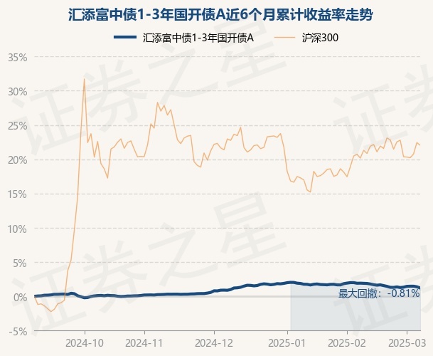 证券之星消息,3月6日,汇添富中债1-3年国开债A最新单位净值为1.0366元,累计净值为1.1908元,较前一交易日下跌0.09%。历史数据显示该基金近1个月下跌0.59%,近3个月上涨0.5%,近6个月上涨1.39%,近1年上涨3.37%。该基金近6个月的累计收益率走势如下图:
