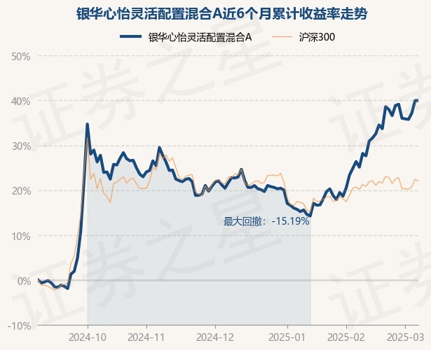 证券之星消息,3月6日,银华心怡灵活配置混合A最新单位净值为2.7653元,累计净值为2.9383元,较前一交易日上涨2.02%。历史数据显示该基金近1个月上涨13.43%,近3个月上涨15.03%,近6个月上涨39.97%,近1年上涨28.2%。该基金近6个月的累计收益率走势如下图: