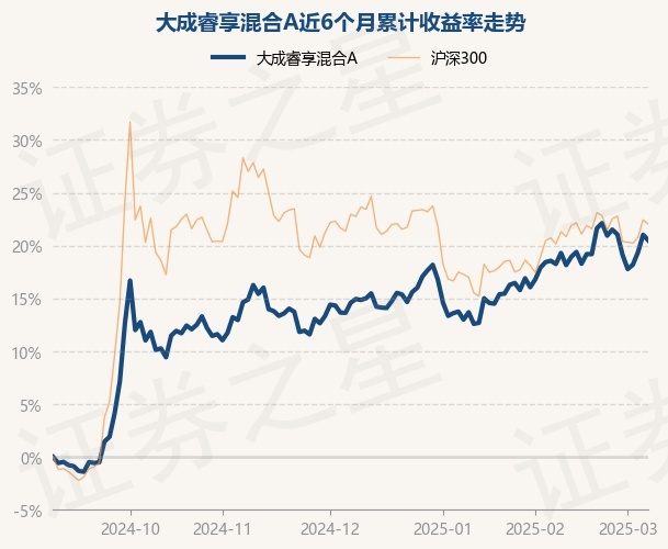 证券之星消息,3月6日,大成睿享混合A最新单位净值为1.6013元,累计净值为1.8156元,较前一交易日上涨1.39%。历史数据显示该基金近1个月上涨2.63%,近3个月上涨5.61%,近6个月上涨21.02%,近1年上涨21.47%。该基金近6个月的累计收益率走势如下图: