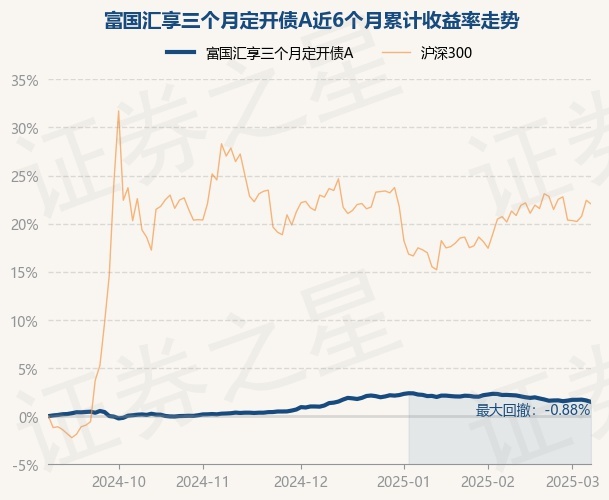 证券之星消息,3月6日,富国汇享三个月定开债A最新单位净值为1.0717元,累计净值为1.0917元,较前一交易日下跌0.08%。历史数据显示该基金近1个月下跌0.68%,近3个月上涨0.64%,近6个月上涨1.63%,近1年上涨3.4%。该基金近6个月的累计收益率走势如下图: