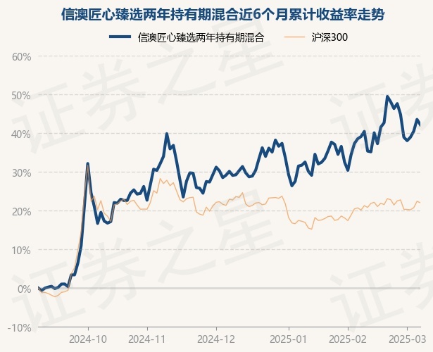 证券之星消息,3月6日,信澳匠心臻选两年持有期混合最新单位净值为1.085元,累计净值为1.085元,较前一交易日上涨0.0%。历史数据显示该基金近1个月上涨6.73%,近3个月上涨10.3%,近6个月上涨43.58%,近1年上涨27.71%。该基金近6个月的累计收益率走势如下图: