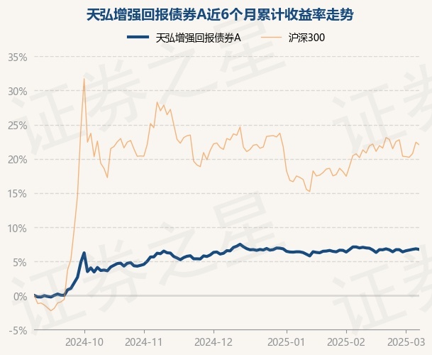 证券之星消息,3月6日,天弘增强回报债券A最新单位净值为1.4154元,累计净值为1.4154元,较前一交易日上涨0.08%。历史数据显示该基金近1个月上涨0.11%,近3个月上涨0.25%,近6个月上涨6.83%,近1年上涨6.38%。该基金近6个月的累计收益率走势如下图: