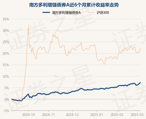 证券之星消息,3月6日,南方多利增强债券A最新单位净值为1.1879元,累计净值为2.0128元,较前一交易日上涨0.5%。历史数据显示该基金近1个月上涨1.6%,近3个月上涨3.41%,近6个月上涨7.27%,近1年上涨6.01%。该基金近6个月的累计收益率走势如下图: