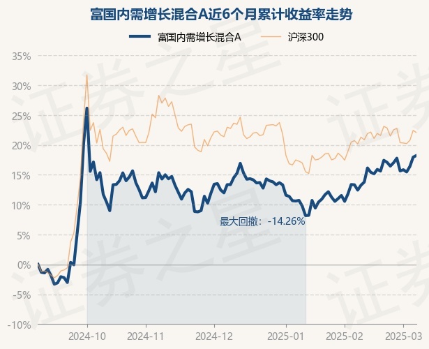 证券之星消息,3月6日,富国内需增长混合A最新单位净值为1.3057元,累计净值为1.3057元,较前一交易日上涨1.33%。历史数据显示该基金近1个月上涨5.53%,近3个月上涨4.06%,近6个月上涨17.95%,近1年上涨4.57%。该基金近6个月的累计收益率走势如下图:
