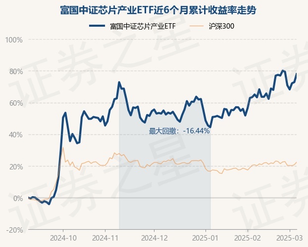 证券之星消息,3月6日,富国中证芯片产业ETF最新单位净值为0.8478元,累计净值为0.8478元,较前一交易日上涨2.95%。历史数据显示该基金近1个月上涨9.25%,近3个月上涨14.83%,近6个月上涨78.0%,近1年上涨54.68%。该基金近6个月的累计收益率走势如下图: