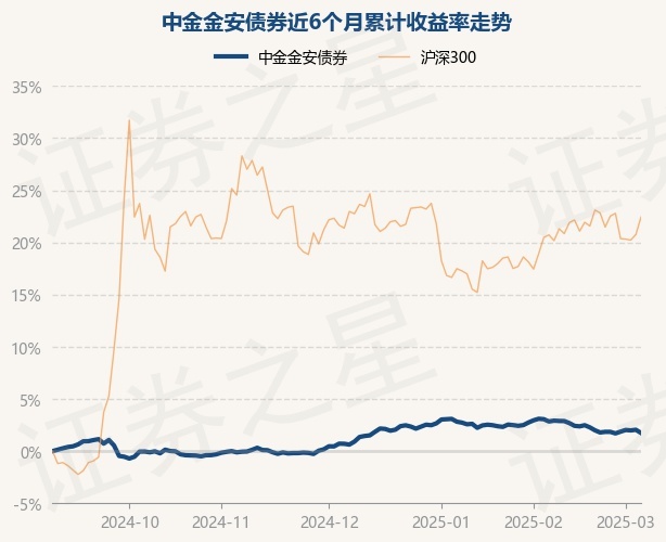 证券之星消息,3月6日,中金金安债券最新单位净值为1.0235元,累计净值为1.0585元,较前一交易日下跌0.3%。历史数据显示该基金近1个月下跌1.32%,近3个月上涨1.11%,近6个月上涨1.74%,近1年上涨4.18%。该基金近6个月的累计收益率走势如下图: