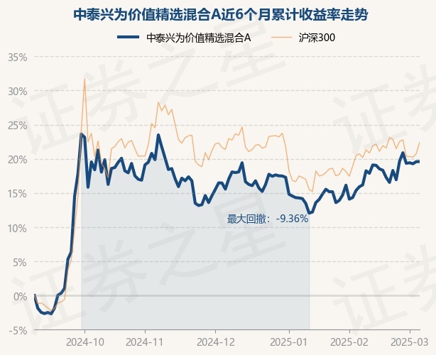 证券之星消息,3月6日,中泰兴为价值精选混合A最新单位净值为1.0949元,累计净值为1.0949元,较前一交易日上涨0.0%。历史数据显示该基金近1个月上涨5.79%,近3个月上涨3.34%,近6个月上涨20.94%,近1年上涨15.59%。该基金近6个月的累计收益率走势如下图: