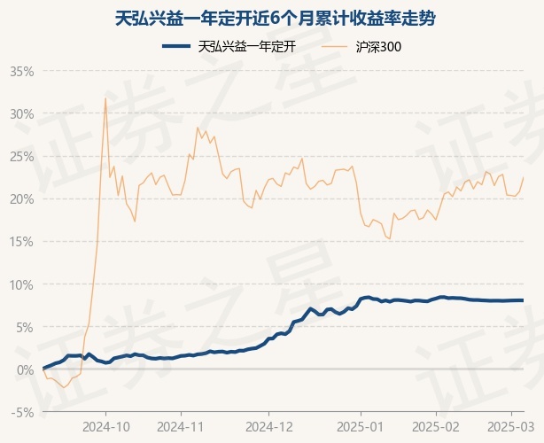 证券之星消息,3月6日,天弘兴益一年定开最新单位净值为1.0815元,累计净值为1.1956元,较前一交易日下跌0.01%。历史数据显示该基金近1个月下跌0.35%,近3个月上涨3.79%,近6个月上涨8.0%,近1年上涨9.46%。该基金近6个月的累计收益率走势如下图:
