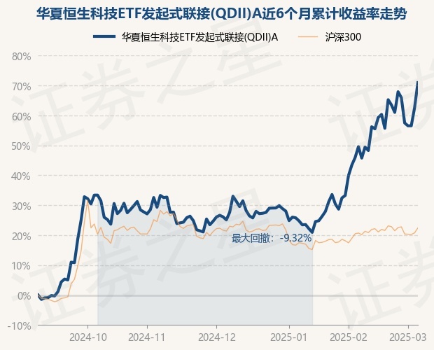 证券之星消息,3月6日,华夏恒生科技ETF发起式联接(QDII)A最新单位净值为1.0667元,累计净值为1.0667元,较前一交易日上涨5.16%。历史数据显示该基金近1个月上涨19.2%,近3个月上涨33.94%,近6个月上涨70.95%,近1年上涨76.34%。该基金近6个月的累计收益率走势如下图: