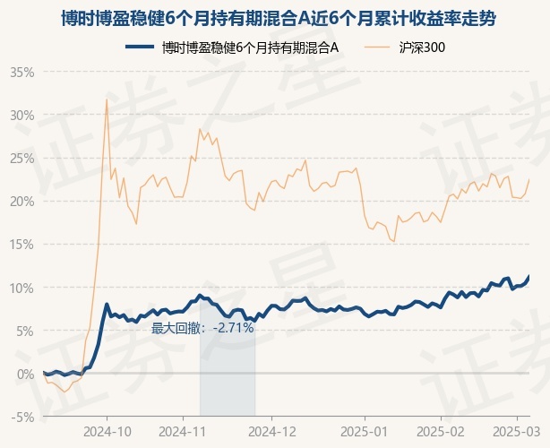证券之星消息,3月6日,博时博盈稳健6个月持有期混合A最新单位净值为0.9129元,累计净值为0.9129元,较前一交易日上涨0.68%。历史数据显示该基金近1个月上涨2.33%,近3个月上涨3.14%,近6个月上涨11.13%,近1年上涨3.69%。该基金近6个月的累计收益率走势如下图: