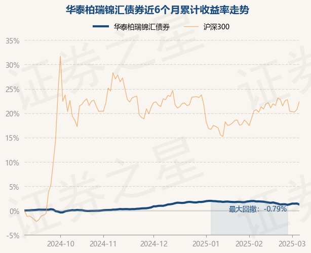 证券之星消息,3月6日,华泰柏瑞锦汇债券最新单位净值为1.0259元,累计净值为1.0503元,较前一交易日下跌0.19%。历史数据显示该基金近1个月下跌0.7%,近3个月上涨0.27%,近6个月上涨1.25%,近1年上涨2.68%。该基金近6个月的累计收益率走势如下图:
