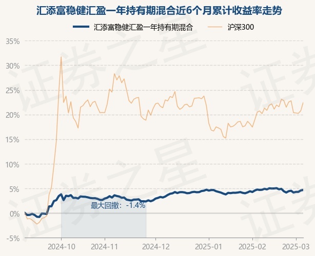 证券之星消息,3月6日,汇添富稳健汇盈一年持有期混合最新单位净值为0.9011元,累计净值为0.9511元,较前一交易日上涨0.1%。历史数据显示该基金近1个月上涨0.11%,近3个月上涨1.29%,近6个月上涨4.69%,近1年上涨2.17%。该基金近6个月的累计收益率走势如下图: