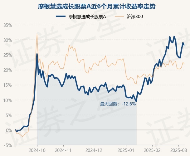 证券之星消息,3月6日,摩根慧选成长股票A最新单位净值为1.2907元,累计净值为1.2907元,较前一交易日上涨1.96%。历史数据显示该基金近1个月上涨7.5%,近3个月上涨12.94%,近6个月上涨29.03%,近1年上涨22.23%。该基金近6个月的累计收益率走势如下图: